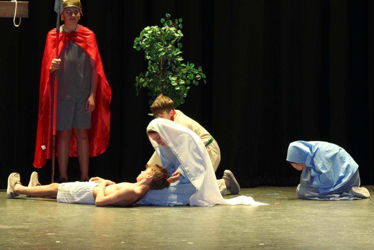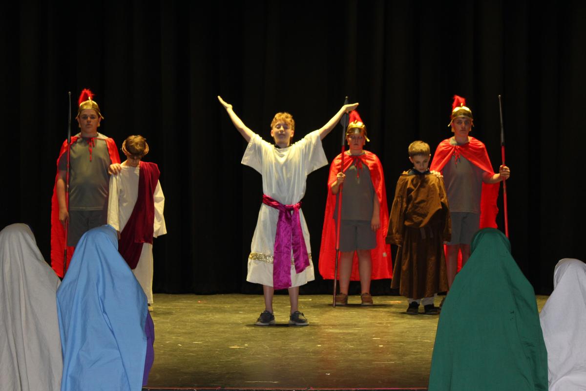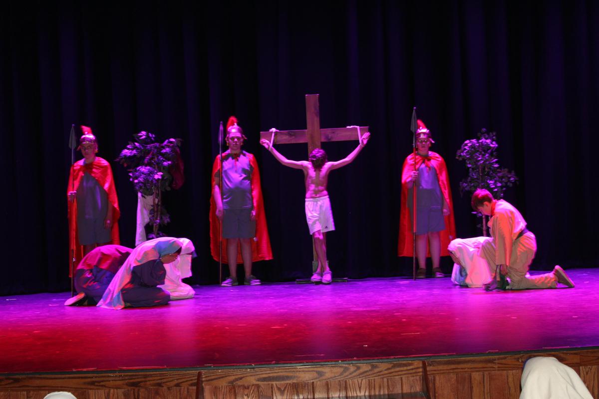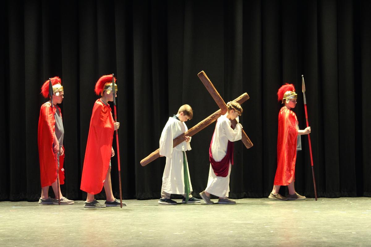 It’s a tradition that dates over twenty-five years. The sixth grade class at DuBois Central Catholic School celebrates Holy Week with a Passion Play, re-enacting the last hours of the life and death of Jesus Christ. Under the leadership of theology educators and performance co-directors Mr. Mike Micknis and Mrs. Nicole Snyder, this year’s class presented four live showings of the Passion Play, including a visit to Christ the King Manor to perform on-site for the residents.