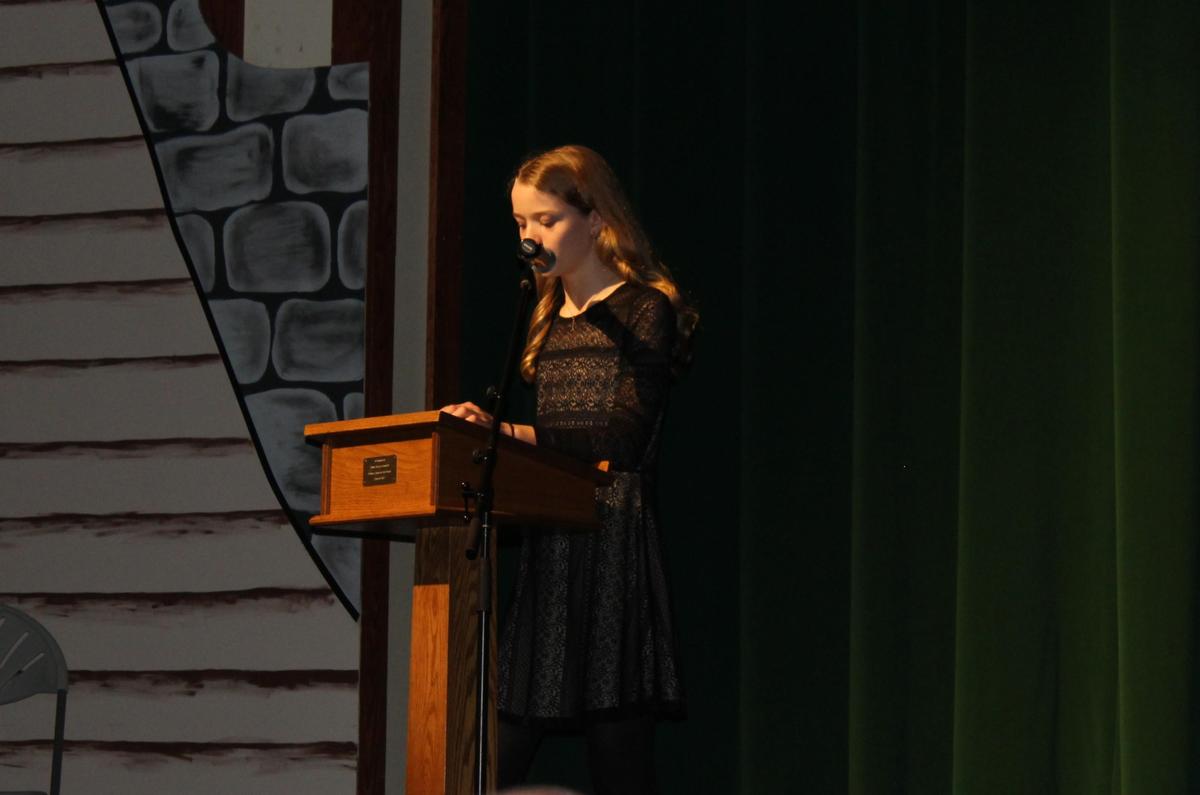 Preparations for the play begin in January. Micknis states, “Every year we begin with a sixth grade class, that for the most part, has no experience on the stage. As the weeks go by, I am always amazed at the growth that students exhibit as they begin to really take on their parts with such intensity.”